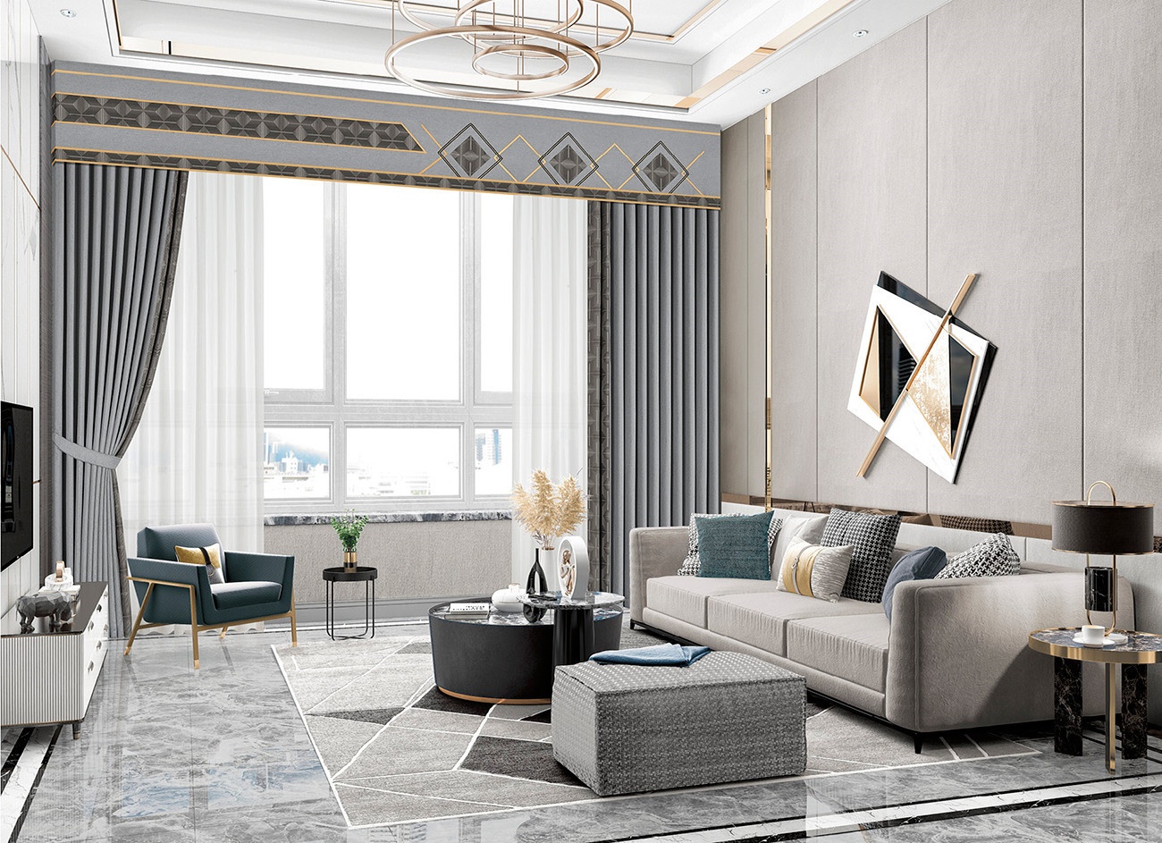汲取銀河的色彩靈感,搭配現代幾何線條,用于窗簾,兼具典雅與時尚。