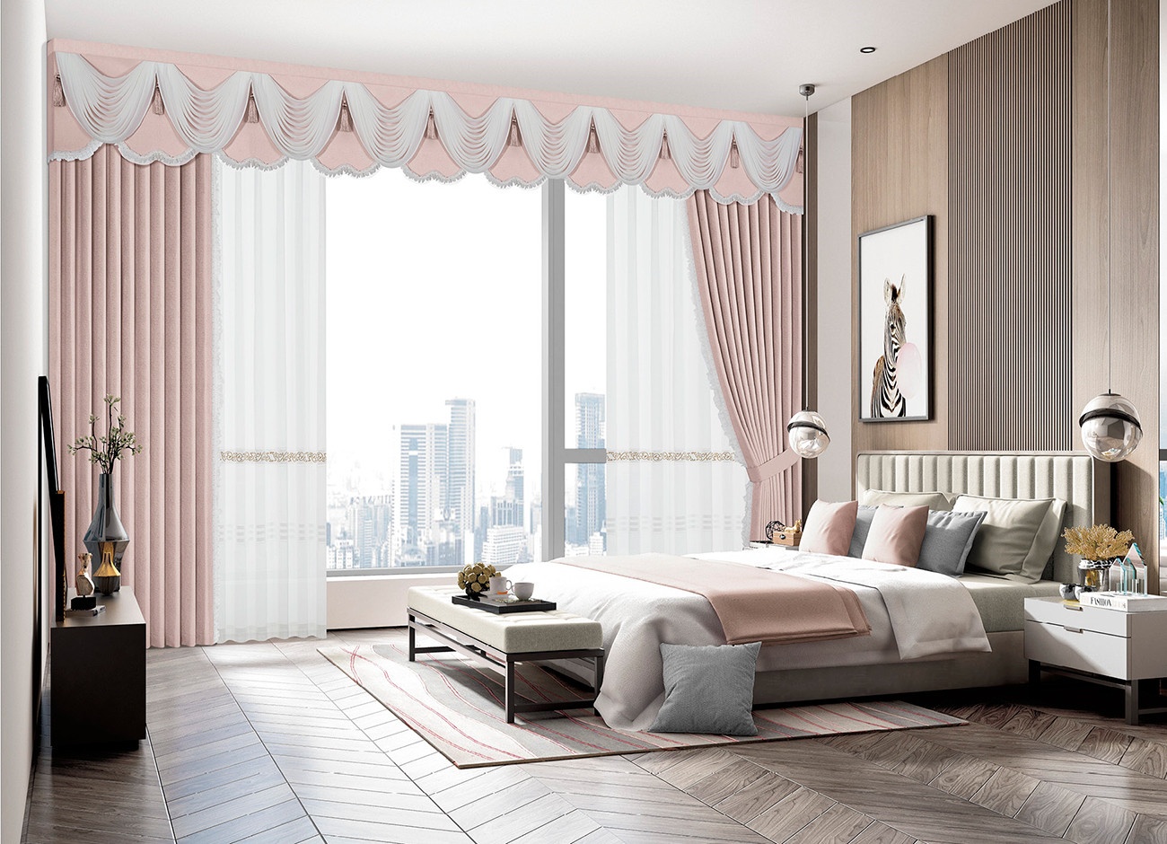 層疊的水波紗與嬌嫩櫻花粉仿佛初入宮廷的少女裙擺,生機(jī)與優(yōu)雅同行,讓空間也明媚起來