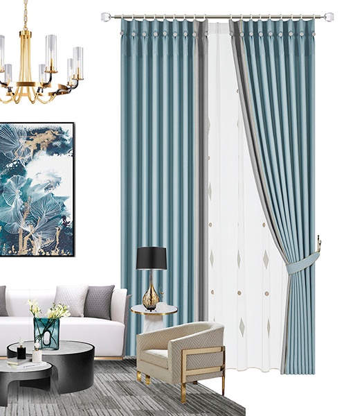 現(xiàn)代簡(jiǎn)約的素凈表象,潛藏著厚重內(nèi)里。布藝的肌理感賦予灰藍(lán)色高級(jí)質(zhì)感,不沾染一絲塵埃的干凈模樣讓空間觀感舒朗起來;簡(jiǎn)潔的平幔簾頭,配合簡(jiǎn)練的幾何圖案,恰到好處的垂墜感,打造恬然而優(yōu)雅的家居風(fēng)情。